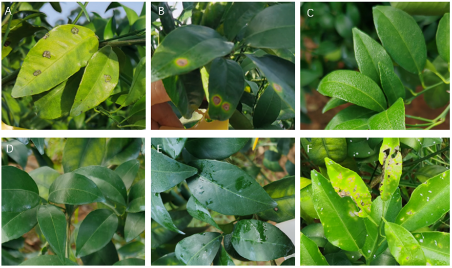 為了驗證″大蒜素+春雷霉素″搭配使用對作物安全性影響,我們設(shè)計實驗并驗證了不同搭配使用濃度組合對柑橘葉片、幼芽、果實的影響。3次施藥后,5%大蒜素微乳劑與2%春雷霉素各濃度處理均對柑橘葉片、幼芽、果實表現(xiàn)安全。