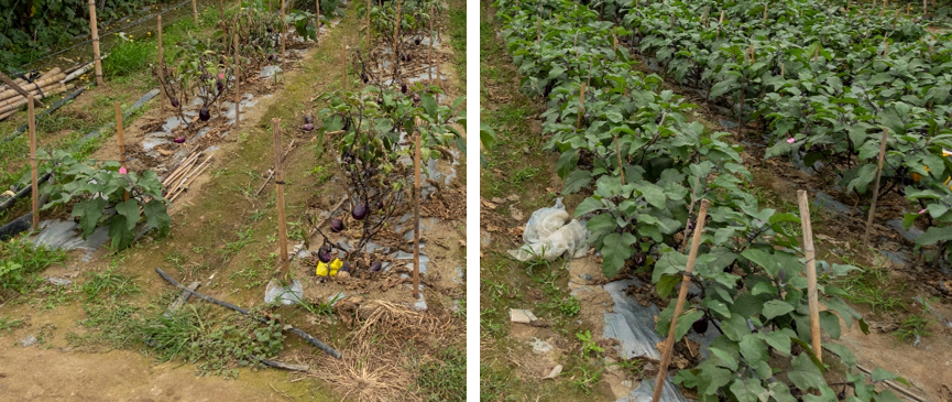 針對茄子青枯病田間試驗結(jié)果表明,末次灌根處理8d后,2%春雷霉素稀釋800倍液+5%大蒜素稀釋800倍液平均防效能夠達92.05%,施藥區(qū)域正常坐果,生長狀態(tài)良好。